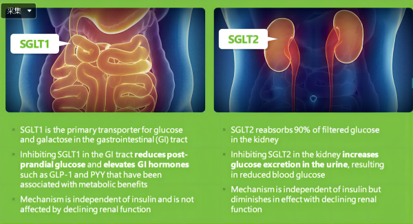 Sotagliflozin是口服的鈉-葡萄糖協(xié)同轉(zhuǎn)運蛋白1型和2型(SGLT1和SGLT2)的雙重抑制劑。SGLT1負(fù)責(zé)胃腸道中的葡萄糖吸收,對SGLT1的抑制可抑制消化道對葡萄糖和半乳糖的吸收;而SGLT2負(fù)責(zé)腎臟對葡萄糖的重吸收,對SLGT2抑制則是減少腎小管對葡萄糖的重吸收。