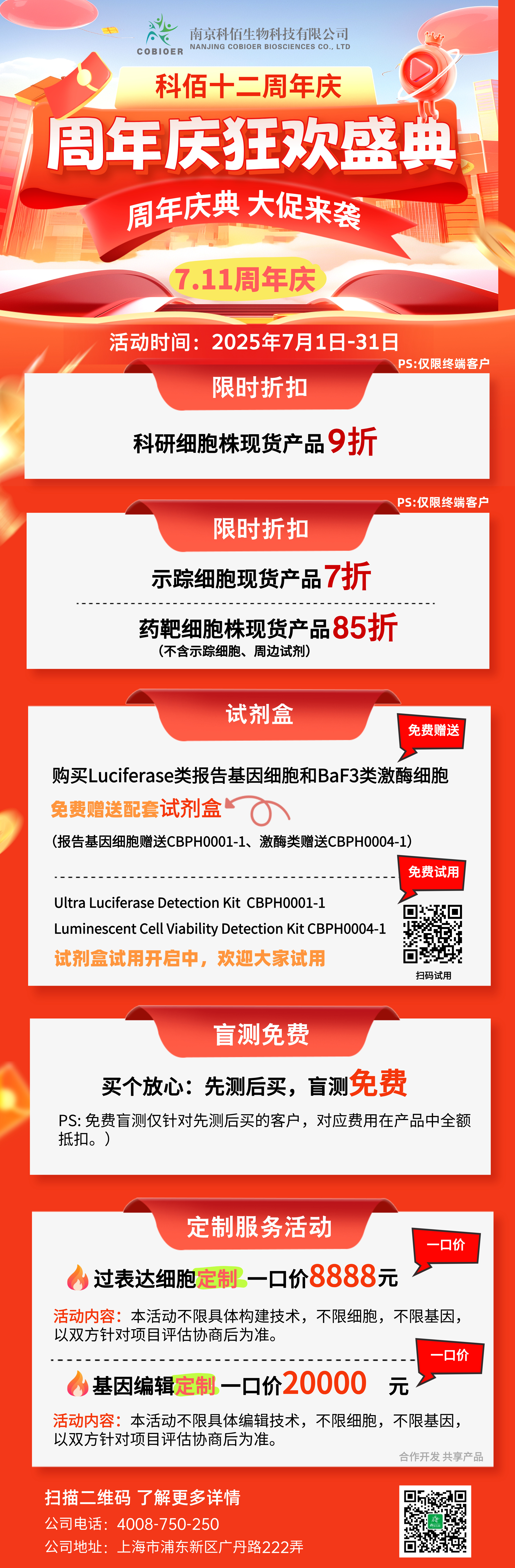 【周年慶狂歡】科佰十二周年慶,藥靶細(xì)胞系列產(chǎn)品,大促來(lái)襲