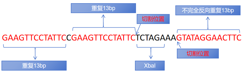 FRT: FRT(Flp Recombination Target)是Flp的識別位點,全長48bp,由3個13bp的反向回文序列和8bp的間隔序列共同組成。與間隔序列相鄰的兩個反向回文序列是Flp重組酶的識別和結合區(qū)域,間隔序列是重組發(fā)生的區(qū)域,也決定了整個序列的方向。