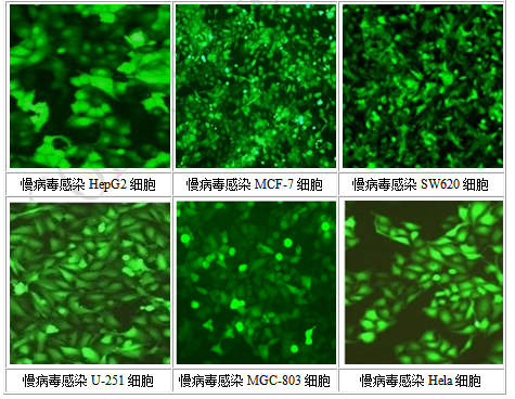 廣泛的宿主,可感染分裂和不分裂的細(xì)胞,幾乎可以感染所有類(lèi)型的細(xì)胞,特別適合質(zhì)粒載體轉(zhuǎn)染效率低的細(xì)胞;