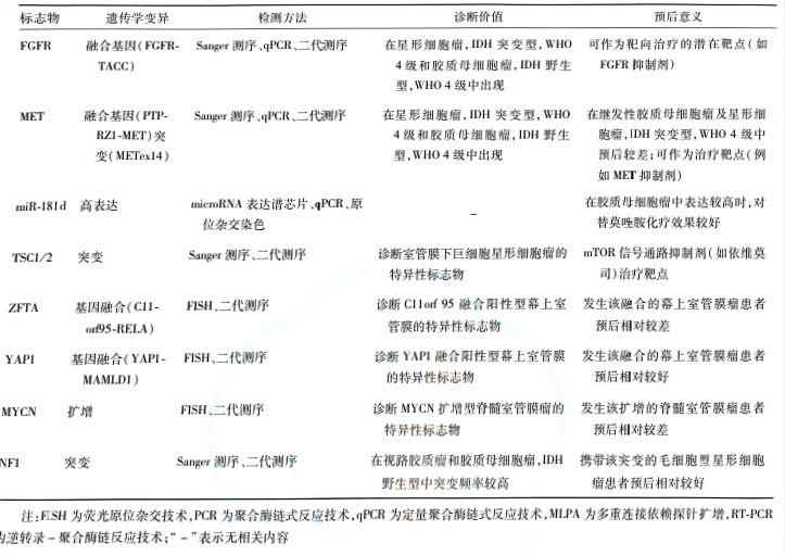 腦膠質(zhì)瘤確診需通過腫瘤切除術(shù)或活組織檢查術(shù)獲取標(biāo)本,進(jìn)行組織病理學(xué)和分子病理學(xué)整合診斷,以確定病理分級(jí)和分子亞型。分子標(biāo)志物對(duì)腦膠質(zhì)瘤的個(gè)體化治療及臨床預(yù)后判斷具有重要意義。