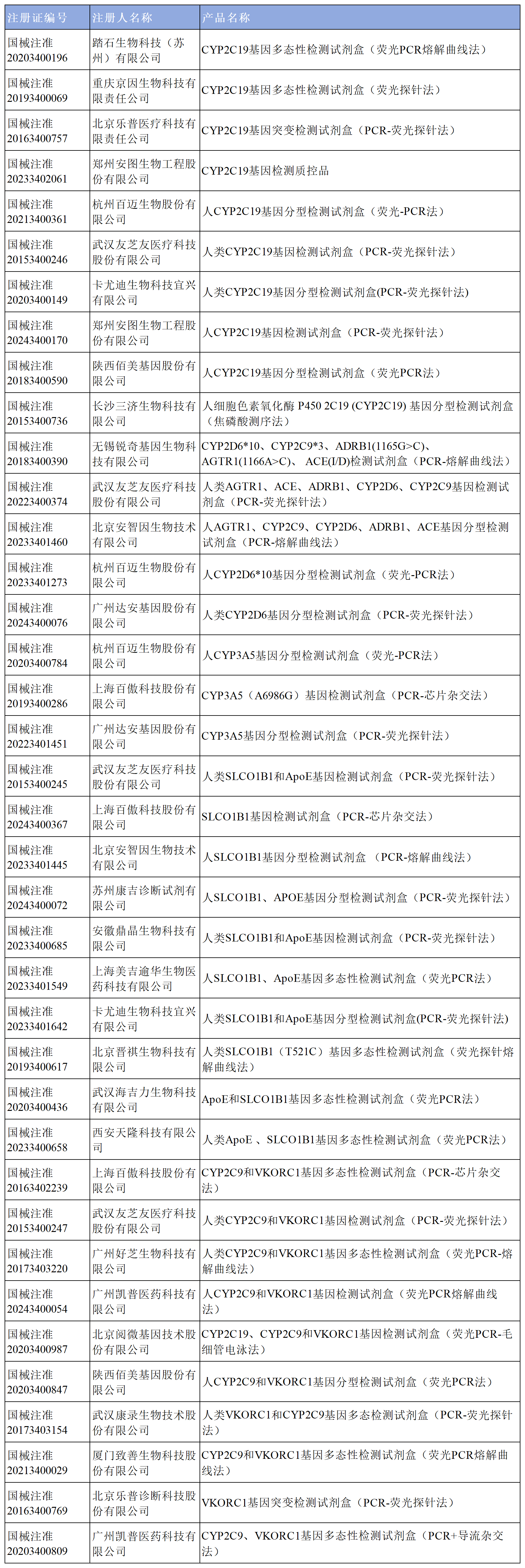 截至2023年9月,國內(nèi)批準(zhǔn)個性化用藥相關(guān)基因檢測產(chǎn)品包括CYP2C19、CYP2C9、UGT1A1、CYP2D6、ALDH2、CYP3A5、SLCO1B1、VKORC1、APOE、ACE、TOP2A、PML-RARα等標(biāo)志物。檢測常用的方法有實時熒光聚合酶鏈反應(yīng)(polymerase chain reaction,PCR)、PCR?電泳分析、PCR-基因芯片法、PCR-Sanger測序、熔解曲線法等分子生物學(xué)方法。
