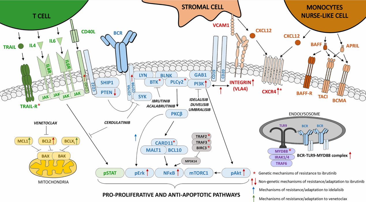 B細(xì)胞受體(BCR)信號(hào)通路在成熟B細(xì)胞惡性腫瘤的發(fā)生和進(jìn)展中起著核心作用,例如慢性淋巴細(xì)胞白血?。–LL)、套細(xì)胞淋巴瘤(MCL)、彌漫性大B細(xì)胞淋巴瘤(DLBCL)、濾泡性淋巴瘤(FL)或華氏巨球蛋白血癥(WM)。BCR信號(hào)通路中的激活突變常見于DLBCL、FL或WM;而在CLL和MCL中一般會(huì)缺失,但BCR信號(hào)轉(zhuǎn)導(dǎo)被組成性激活,并且是其發(fā)病機(jī)制的關(guān)鍵參與者。