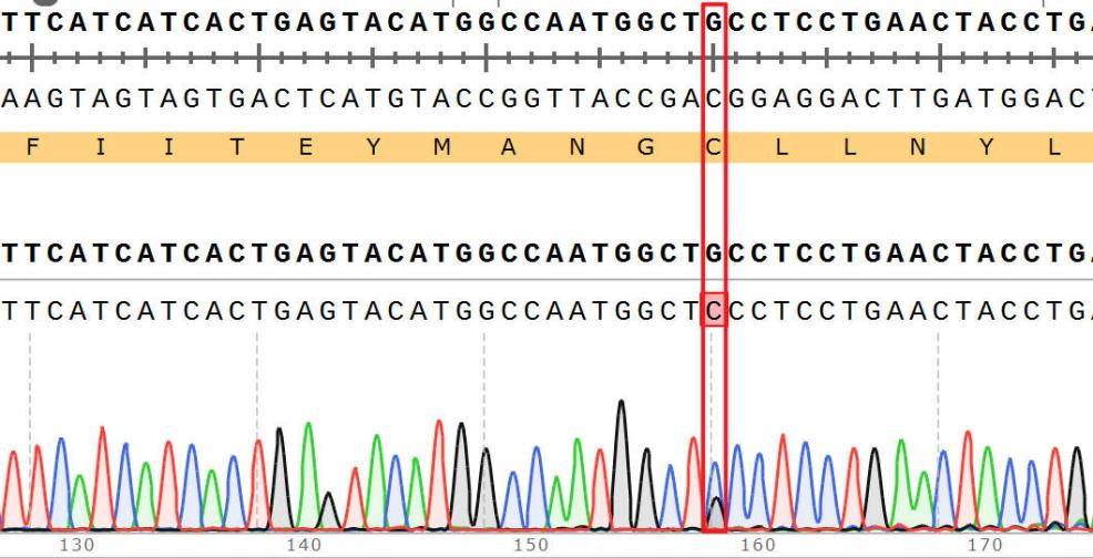 Figure 3:Gene Edited BTK[C481S] Isogenic Cell-測(cè)序結(jié)果