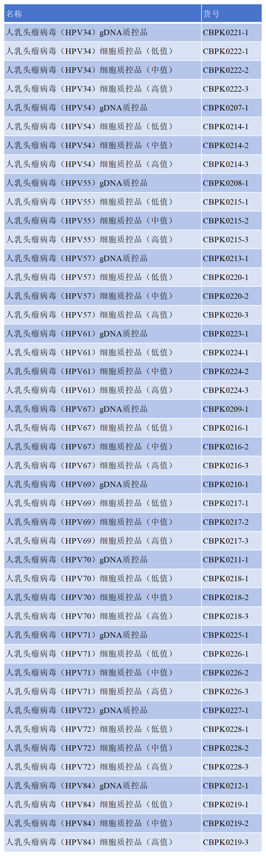 前期,科佰生物已經(jīng)推出了18種高危型和9種低危型的HPV分子診斷標(biāo)準(zhǔn)品,詳情可以點(diǎn)擊【免費(fèi)試用】人乳頭瘤病毒HPV核酸檢測(cè)標(biāo)準(zhǔn)品新品上線,可申請(qǐng)免費(fèi)試用 查看。