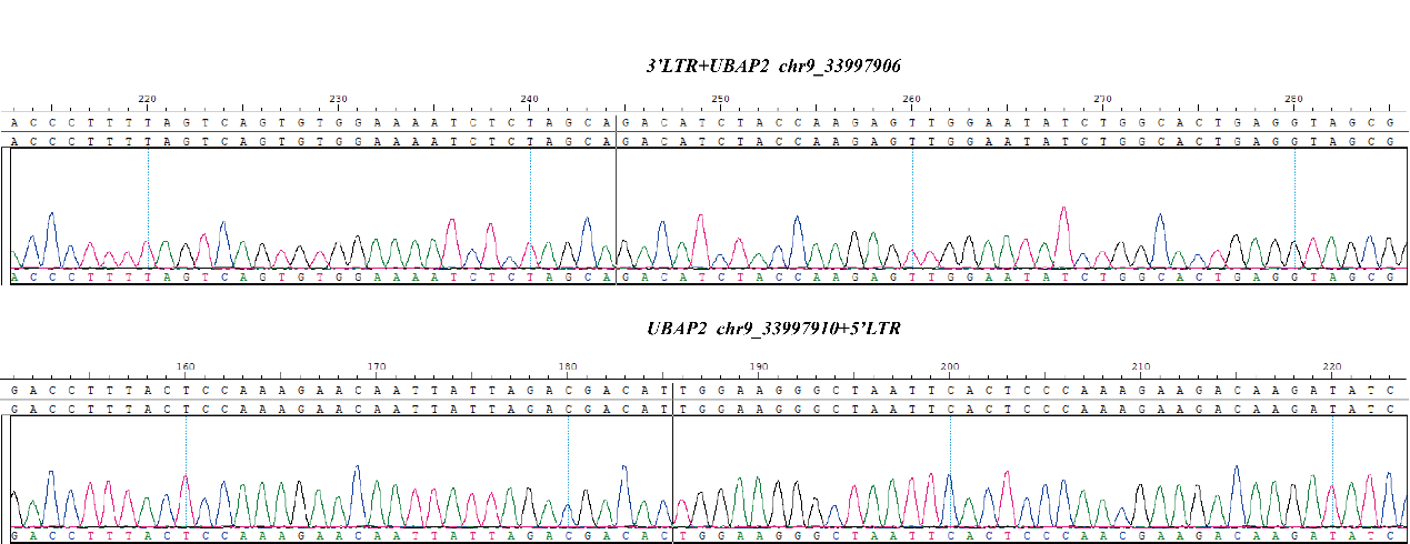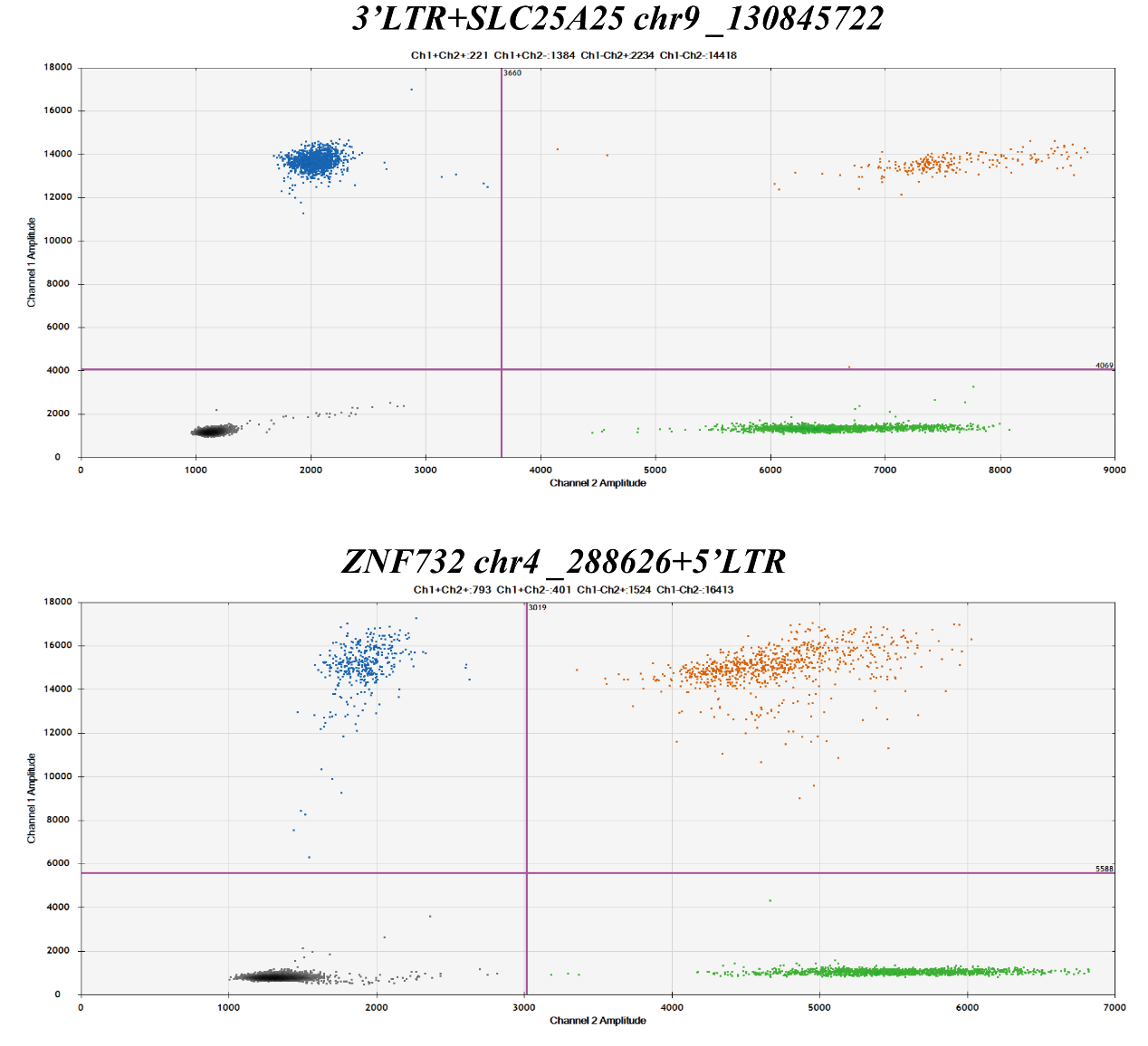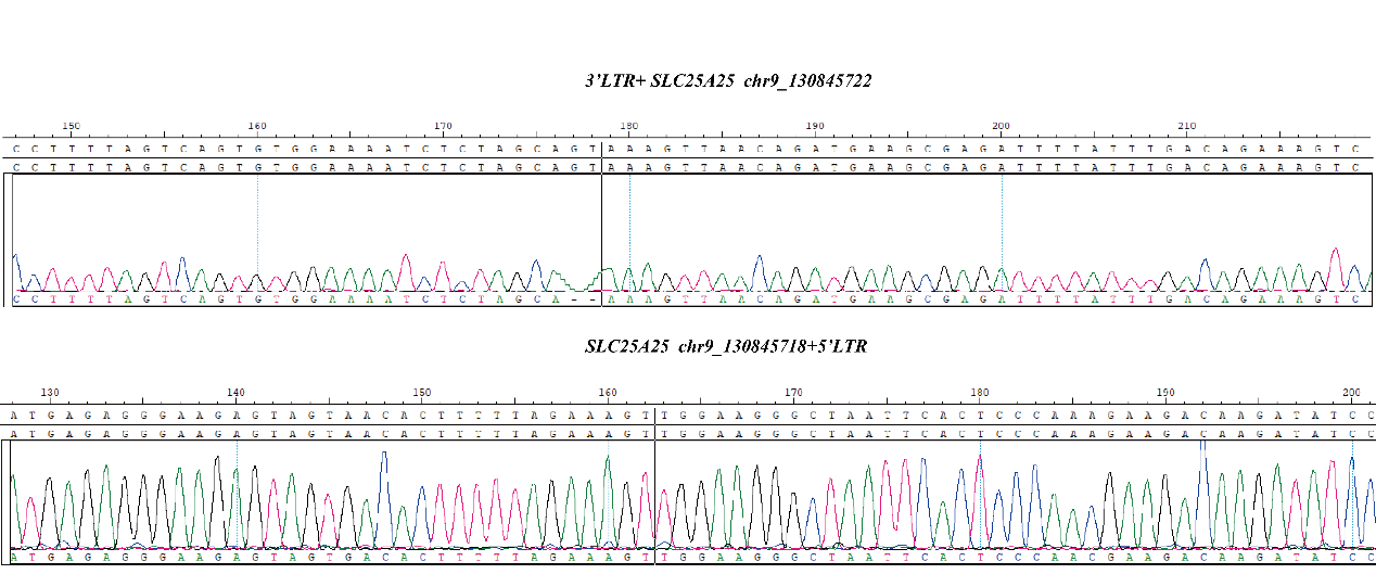 五步正交驗(yàn)證(NGS(整合關(guān)聯(lián)擴(kuò)增技術(shù)(IAA,靶向捕獲, LAM-PCR)+ Sanger確認(rèn) + dPCR定量),確保位點(diǎn)序列與頻率的準(zhǔn)確性。在驗(yàn)證LTR整合基因組位點(diǎn)的基礎(chǔ)上,進(jìn)一步驗(yàn)證了載體上其他基因序列在基因組上的非典型整合位點(diǎn)。