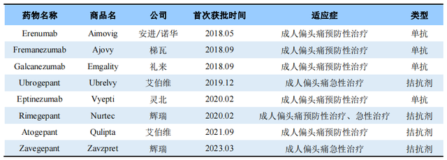 2018年以來(lái),已有多款靶向降鈣素基因相關(guān)肽(CGRP)或其受體的藥物獲批,用于偏頭痛的治療或預(yù)防,這標(biāo)志著偏頭痛治療新時(shí)代的到來(lái)。與傳統(tǒng)療法相比,CGRP相關(guān)療法具有顯著的改進(jìn),它們特異性地作用于三叉神經(jīng)疼痛系統(tǒng),且很少或沒(méi)有不良反應(yīng)。Ubrogepant等CGRP受體拮抗劑可以有效緩解偏頭痛的急性發(fā)作,而Eptinezumab、Fremanezumab和Erenumab等靶向CGRP或CALCRL的單克隆抗體可以有效預(yù)防偏頭痛發(fā)作。目前,全球已批準(zhǔn)8款CGRP/CGRPR類(lèi)偏頭痛藥物上市,國(guó)內(nèi)僅君實(shí)生物和博安生物有所布局。其中君實(shí)生物的CGRP單抗JS010于2022年12月30日申報(bào)臨床。隨著患者需求不斷提高及創(chuàng)新藥物相繼面世的推動(dòng)下,預(yù)計(jì)2024年偏頭痛領(lǐng)域市場(chǎng)規(guī)??沙?10億美元,未來(lái)CGRP類(lèi)藥物市場(chǎng)空間潛力巨大。