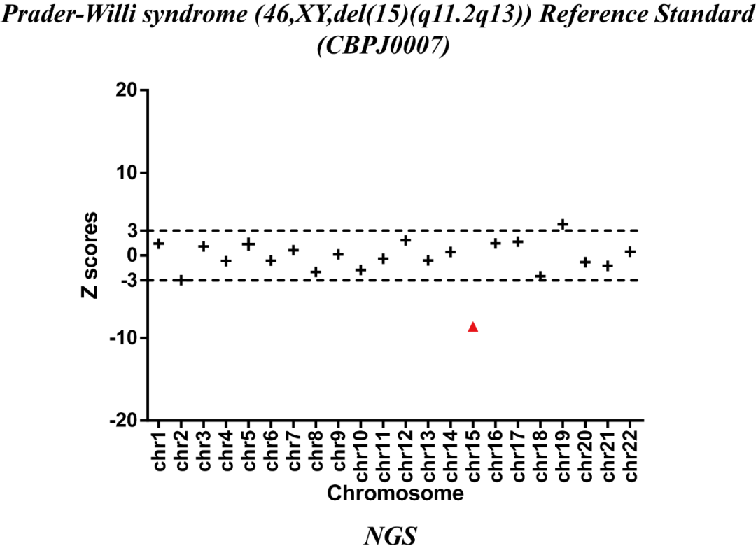 Fig 3. Results of NGS with Prader-Willi syndrome (46,XY,del(15)(q11.2q13)) Reference Standard.