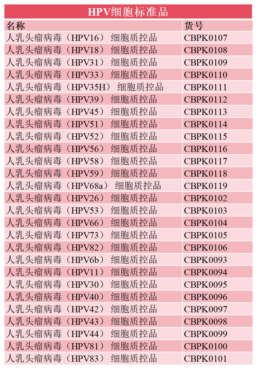 涵蓋18種高危型和9種低危型(并在持續(xù)更新中),可滿足市面試劑盒質控需求;